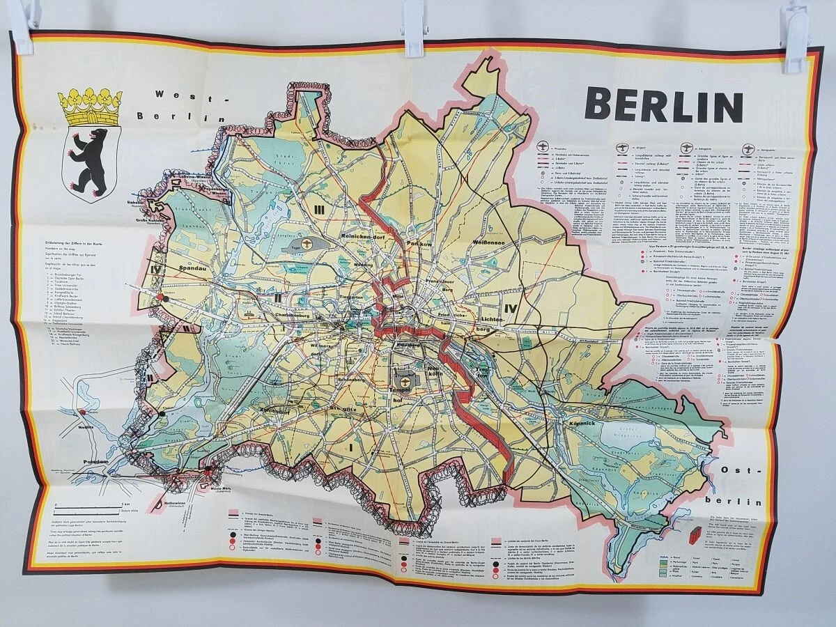 Map Berlin . The Berlin city map contains: Map of Berlin city centre Line network of Berlin public transport (S-Bahn, U-Bahn, bus, tram) Pictograms of centrally located sights Addresses of Berlin Tourist Info Former course of the Berlin Wall Sustainability The city maps are printed on FSC Mix certified paper. Description: This map shows streets, roads, buildings, churches, stadiums, railway, railway station, parking lots, shops and parks in Berlin